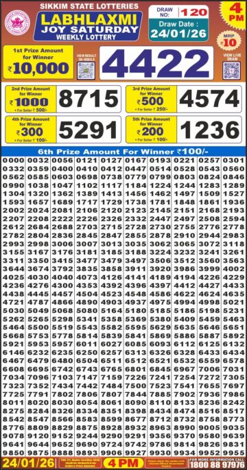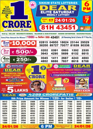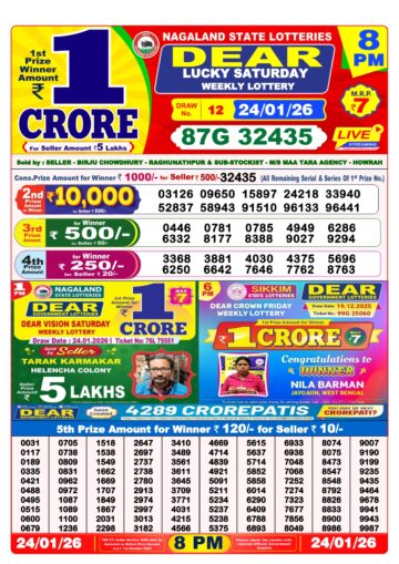 Dear Lottery Result 24.01.26 6PM Today Dear Day Result