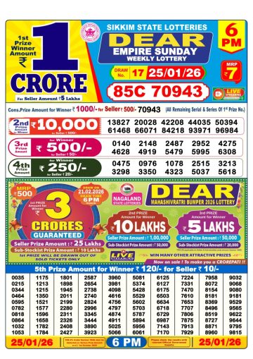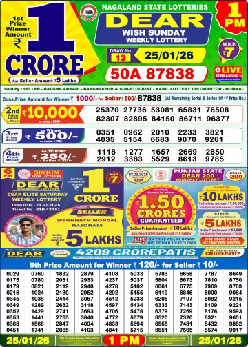Dear Lottery Result 25.01.26 6PM Today Dear Day Result