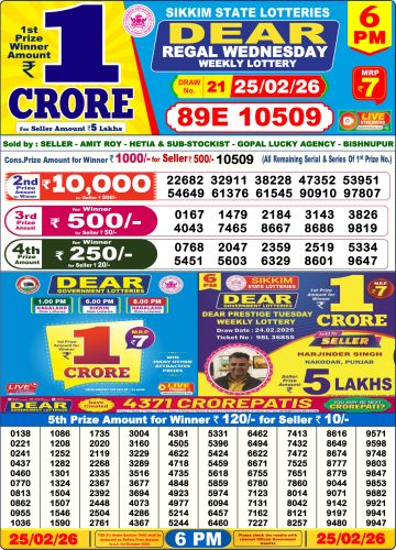 Dear Lottery Result 25.02.26 6PM Today Dear Day Result