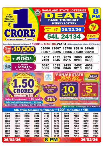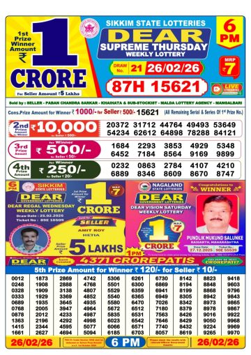 Dear Lottery Result 26.02.26 6PM Today Dear Day Result