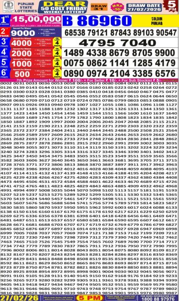 Punjab State Dear 50 5 PM Lottery Result 26.02.26