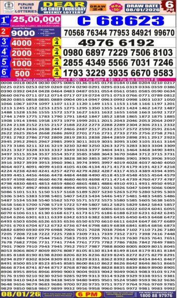 Punjab State Dear 50 6 PM Lottery Result 08.01.26
