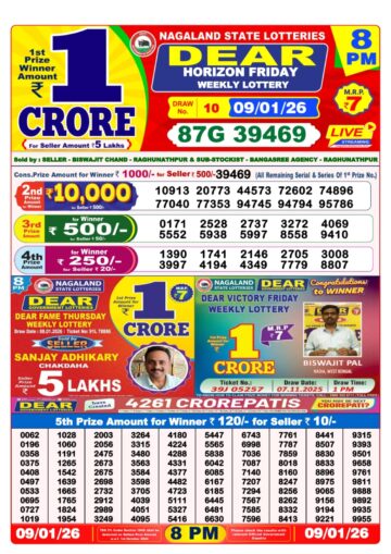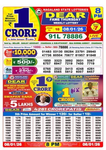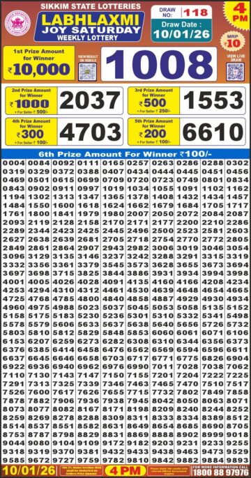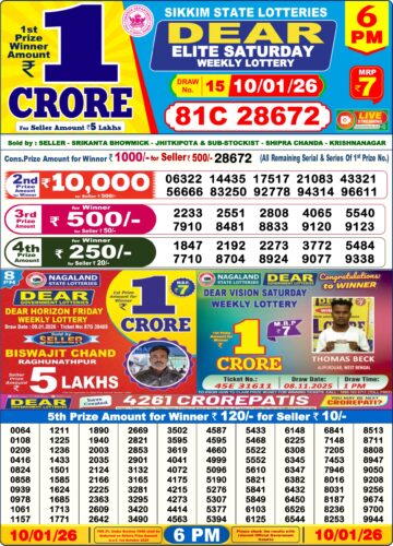 Dear Lottery Result 10.01.26 6PM Today Dear Day Result