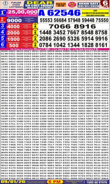 Dear Lottery Result 09.01.26 6PM Today Dear Day Result