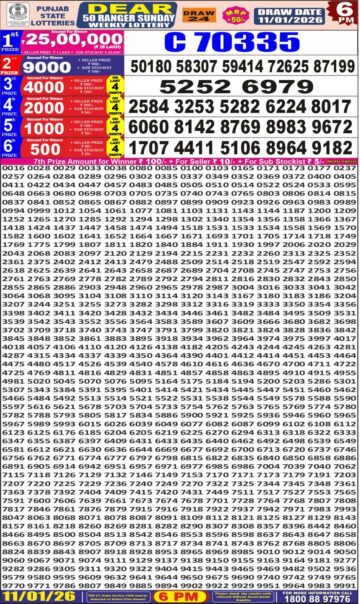 Punjab State Dear 50 6 PM Lottery Result 11.01.26