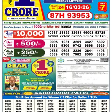 Punjab state dear 10 lottery result 6 p.m. 15.03 2025 Share: XFacebookPinterestRedditVKDiggLinkedinMix Related Results 0 7 Dear Lottery Result 16.03.26 6PM Today Dear Day Result 0 13 Dear Lottery Result 15.03.26 6PM Today Dear Day Result 0 19 Punjab State Dear Holi Bumper 6PM Lottery Result 14.03.26 0 15 Dear Lottery Result 14.03.26 6PM Today Dear Day Result