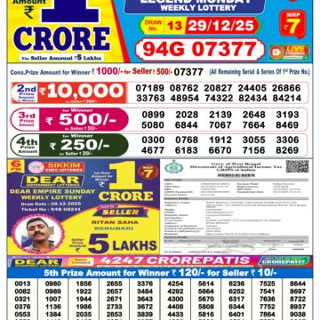 Punjab state dear 10 lottery result 6 p.m. 22.03 2025 Share: XFacebookPinterestRedditVKDiggLinkedinMix Related Results 0 10 Dear Lottery Result 29.12.25 6PM Today Dear Day Result 0 17 Dear Lottery Result 28.12.25 6PM Today Dear Day Result 0 23 Dear X-Mas Bumper 27.12.25 6PM Today Dear Day Result 0 29 Dear Lottery Result 27.12.25 6PM Today Dear Day Result