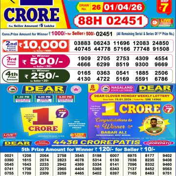 Punjab state dear 10 lottery result 6 p.m. 4.05 2025 Share: XFacebookPinterestRedditVKDiggLinkedinMix Related Results 0 5 Dear Lottery Result 01.04.26 6PM Today Dear Day Result 0 12 Dear Lottery Result 31.03.26 6PM Today Dear Day Result 0 23 Dear Lottery Result 30.03.26 6PM Today Dear Day Result 0 25 Dear Lottery Result 29.03.26 6PM Today Dear Day Result
