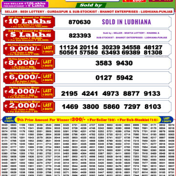 Punjab State Dear 100 Monthly 7 PM Lottery Result 13.01.26 Share: XFacebookPinterestRedditVKDiggLinkedinMix Related Results 0 37 Punjab State Dear 200 Monthly 6 PM Lottery Result Live 03.01.26