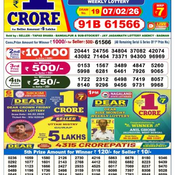 Punjab state dear10 lottery result 6pm 2.1.25 Share: XFacebookPinterestRedditVKDiggLinkedinMix Related Results 0 8 Dear Lottery Result 07.02.26 6PM Today Dear Day Result 0 15 Dear Lottery Result 06.02.26 6PM Today Dear Day Result 0 22 Dear Lottery Result 05.02.26 6PM Today Dear Day Result 0 30 Dear Lottery Result 04.02.26 6PM Today Dear Day Result