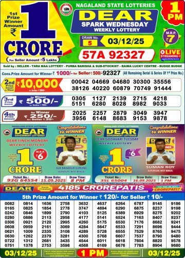 Dear Lottery Result 03.12.25 1PM Today Dear Morning