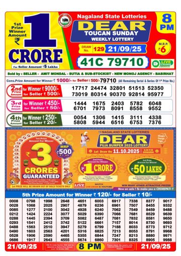 Dear Lottery Result 21.09.25 1PM Today Dear Morning