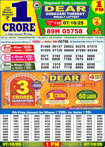 Dear Lottery Result 07.10.25 1PM Today Dear Morning