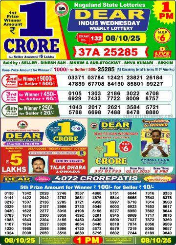 Dear Lottery Result 08.10.25 6PM Today Dear Day Result