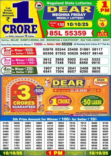 Dear Lottery Result 10.10.25 1PM Today Dear Morning