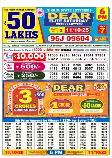 Dear Lottery Result 11.10.25 6PM Today Dear Day Result