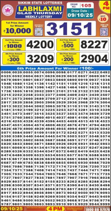 Labh Laxmi Lottery Result Today 4PM 09.10.25
