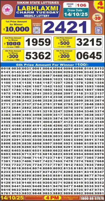 Labh Laxmi Lottery Result Today 4PM 14.10.25