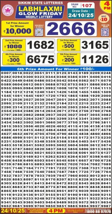 Labh Laxmi Lottery Result Today 4PM 24.10.25
