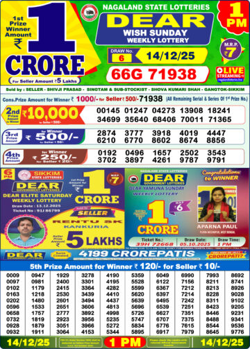Dear Lottery Result 10.12.25 1PM Today Dear Morning
