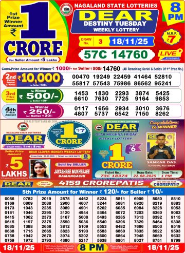Dear Lottery 8pm Declared 18.11.25 Lottery Sambad Evening