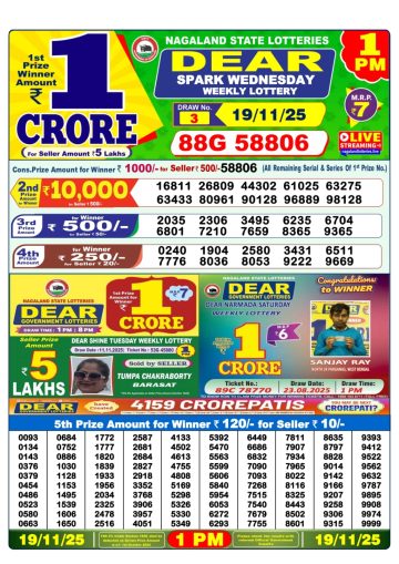 Dear Lottery Result 19.11.25 1PM Today Dear Morning