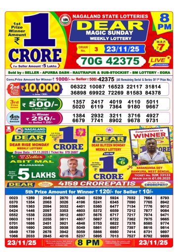 Dear Lottery Result 23.11.25 6PM Today Dear Day Result