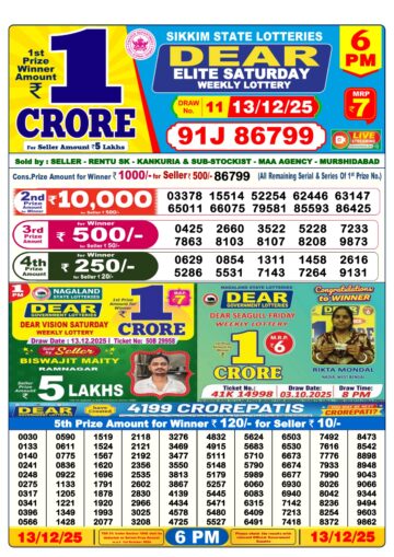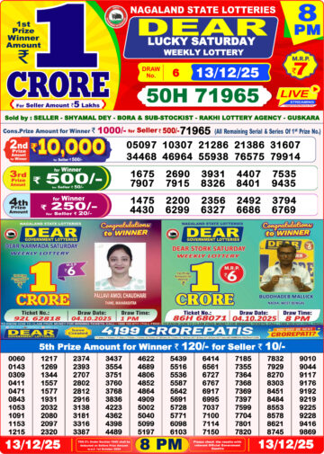 Dear Lottery Result 13.12.25 6PM Today Dear Day Result