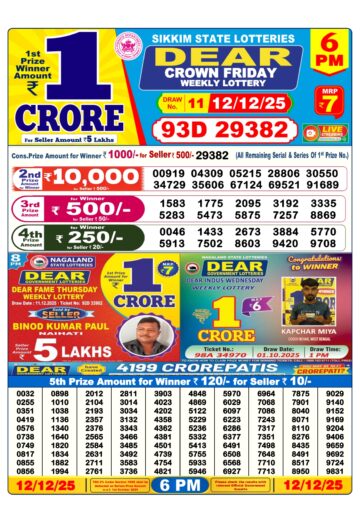 Dear Lottery Result 11.12.25 6PM Today Dear Day Result