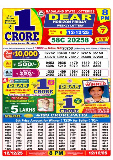 Dear Lottery Result 12.12.25 6PM Today Dear Day Result