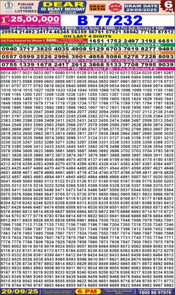 Punjab State Dear 50 6 PM Lottery Result 29.09.25