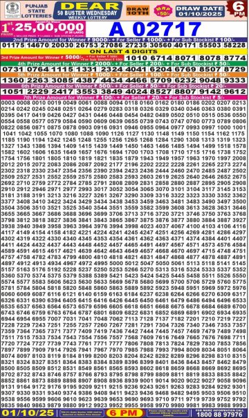 Punjab State Dear 50 6 PM Lottery Result 10.10.25