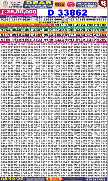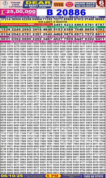 Punjab State Dear 50 6 PM Lottery Result 06.10.25