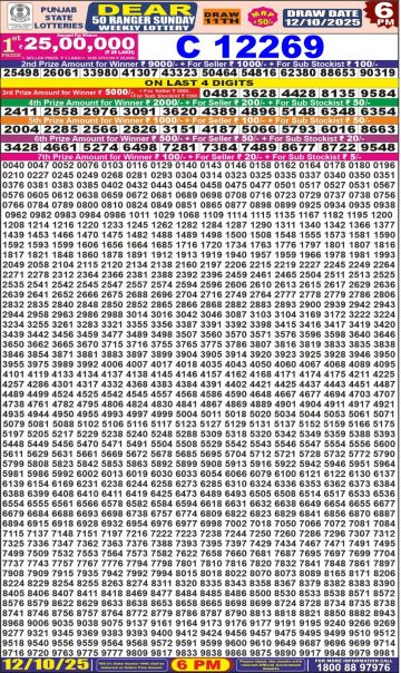 Punjab State Dear 50 6 PM Lottery Result 12.10.25