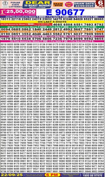 Punjab State Dear 50 6 PM Lottery Result 22.09.25