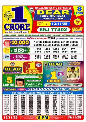 Dear Lottery Result 13.11.25 1PM Today Dear Morning