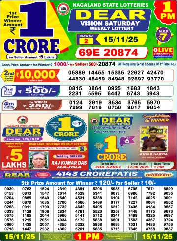 Dear Lottery Result 15.11.25 1PM Today Dear Morning